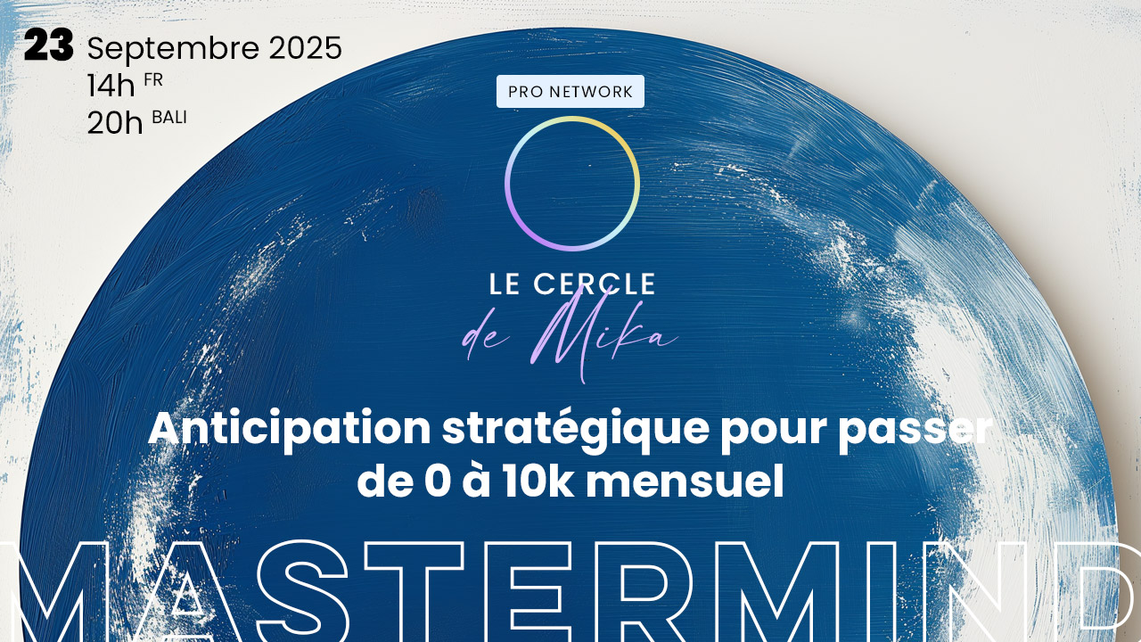 10 Septembre 2025 On croit que ce que nous voyons est LA réalité alors que ce n’est qu’un filtre subjectif, dans ce podcast j’explique pourquoi. 17 Septembre 2025 Découvre la raison qui fait que de simples pubs sur les réseaux ne fonctionnent pas et modifie ton axe stratégique. 23 Septembre 2025 14h France Augmenter son CA n’est pas un hasard, c’est une mécanique de précision à la portée de chacun. Pendant ce Mastermind je t’explique comment. Mika Denissot 24 Septembre 2025 Notre monde n’est pas en train de se diviser en 2 mais en 3. Quelques questions pour prendre ta place. 30 Septembre 2025 14h France 2 qualités primordiales pour faire face à l’effondrement systémique que nous vivons. Pendant ce Mastermind nous allons explorer comment, pourquoi et quand. Mika Denissot